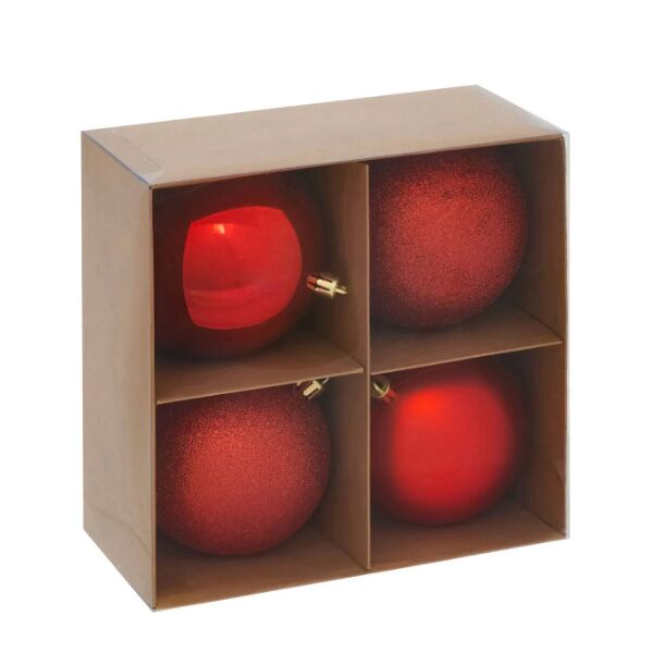 Set novogodišnjih kugli x4 100mm sort crvena (207476)