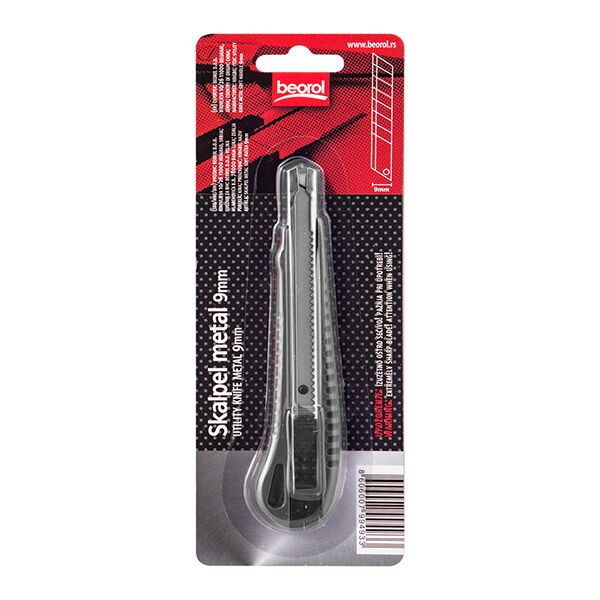 Kvalitetan skalpel sa metalnim vođicama i metalnim ergonomskim rukohvatom. Izuzetna čvrstina skalpela omogućava majstoru da završi i najzahtevnije poslove sečenja. Koristi lomljiva sečiva.