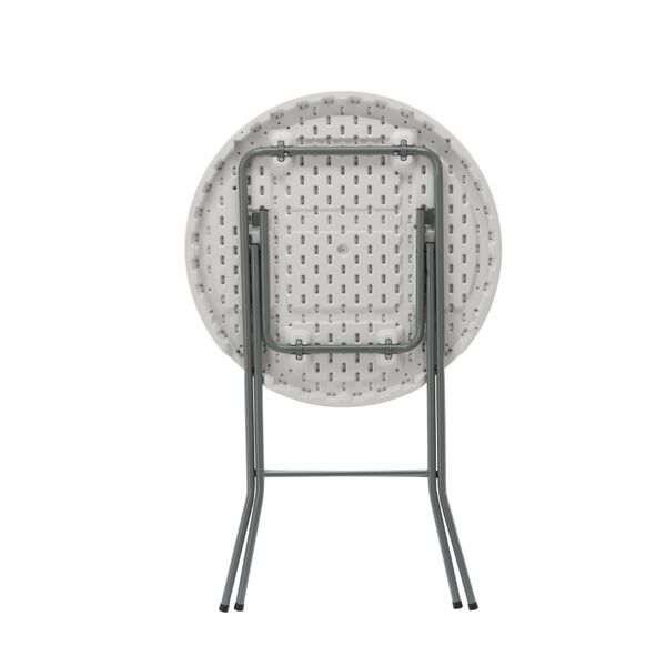 Okrugli baštenski sto se sastoji od čvrstog čeličnog okvira i visokokvalitetne površine HDPE otporne na vremenske uslove i lako se održava.