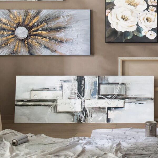 Umetnička slika sa detaljima pravougaonika koja se uklapa u neke hladnije boje vašeg enterijera.