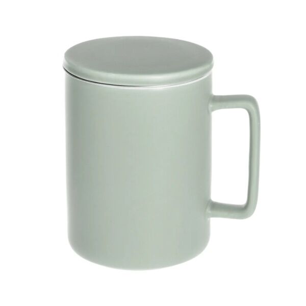 Šolja sa cediljkom i poklopcem zapremnine 40 cl, zelena, za praktičnu upotrebu.
