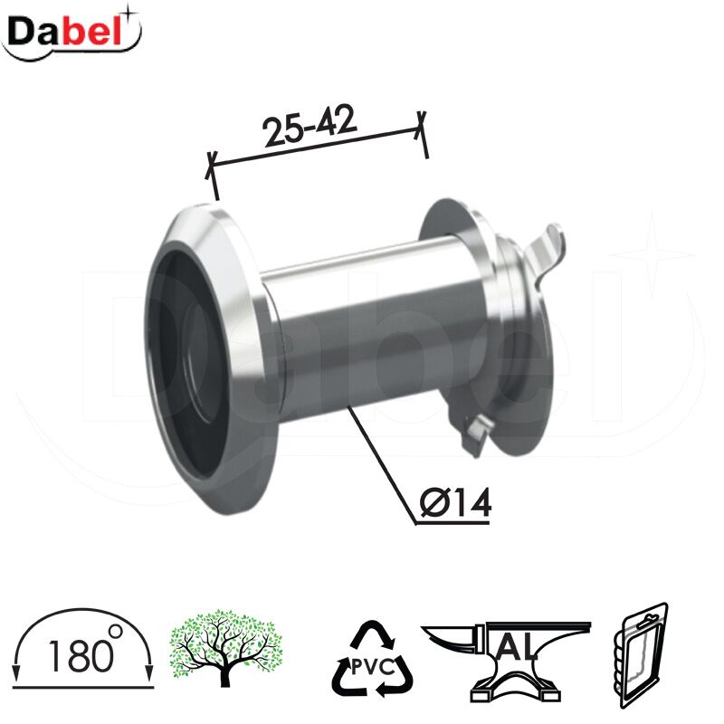 DABEL- Špijunka za vrata ŠP4000- Materijal: Zamak- Boja: Hromirana.Upotreba: drvo/pvc/alu.