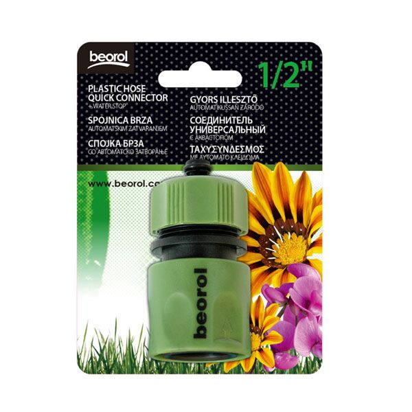 Spojnica brza 1/2″ sa automatskim zatvaranjem je adapter za spajanje creva sa brzom spojnicom i automatskim zatvaranjem izrađen od kvalitetne ABS plastike.