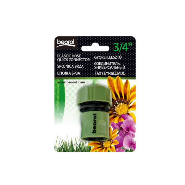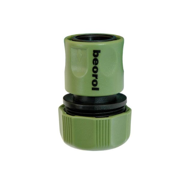 Konektor za crevo, stop funkcija, PVC. Izrađeni od polimera i gume. Standardni priključci za crevo. Postavlja se na kraju creva i služi za povezivanje sa mlaznicom.