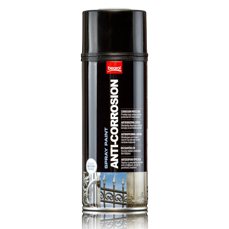 Antikorozivni sprej pruža metalima dugotrajnu zaštitu od korozije. Može se pokriti narednim nanosima boje odgovarajućeg sastava nakon potpunog sušenja. Otporan na prašinu posle 10 minuta, na dodir posle 20 minuta a potpuno sušenje se postiže u roku od 24 časa. Otporan je na sve atmosferske uticaje. Karakteristike: odlična pokrivnost, visoka otpornost, pigment bez olova, brzosušeći, bez CFC-a. Boca od 400ml pokriva površinu od 1,5-2m2. Otporan je na temperature od 100-120°C.