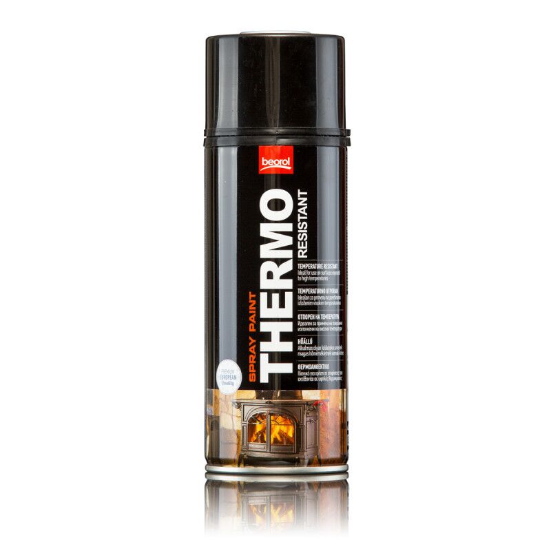 Specijalna silikonska boja u spreju otporna na visoke temperature. Pogodna je za upotrebu na izduvnim sistemima, hladnjacima i ventilima na automobilima, radijatorima, dimnjacima, grejnim telima i rernama. Ne koristiti bilo kakve osnovne i zaštitne boje pre nanošenja spreja pošto oni imaju manju otpornost na temperaturu. Boja postiže svoju konačnu čvrstoću nakog prvog zagrevanja na 150-200°C u trajanju od najmanje 2 sata. Podnosi temperature do 600°C. Boca od 400ml pokriva površinu od 1,5-2m2 u zavisnosti od boje farbe. Otporan na prašinu posle 10 minuta, na dodir posle 20 minuta a potpuno sušenje se postiže u roku od 24 časa. Boja: crna.