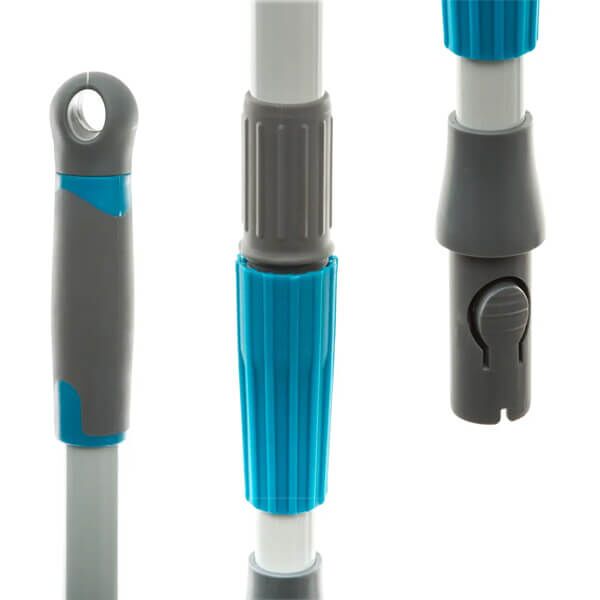 Five teleskopska drška Switch&Clean ima podesivu dužinu od 72 cm do 115 cm. Otporna, dugotrajna i prilagođava se svim proizvodima iz kolekcije Switch&Clean. Sadrži otvor za odlaganje i kačenje drške za maksimalnu uštedu prostora. Izrađena od kvalitetnog polipropilena i nerđajućeg čelika u kombinaciji sive i plave boje. Dimenzije: 3 x 115 cm