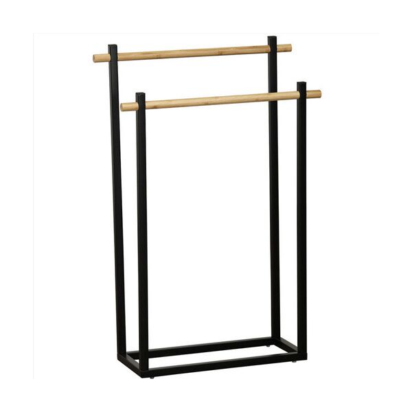 Tendance držač peškira sa dve prečke 53x20x82 cm metal bambus crna – crni držač sa prečkama i bambus detaljima za moderan izgled.