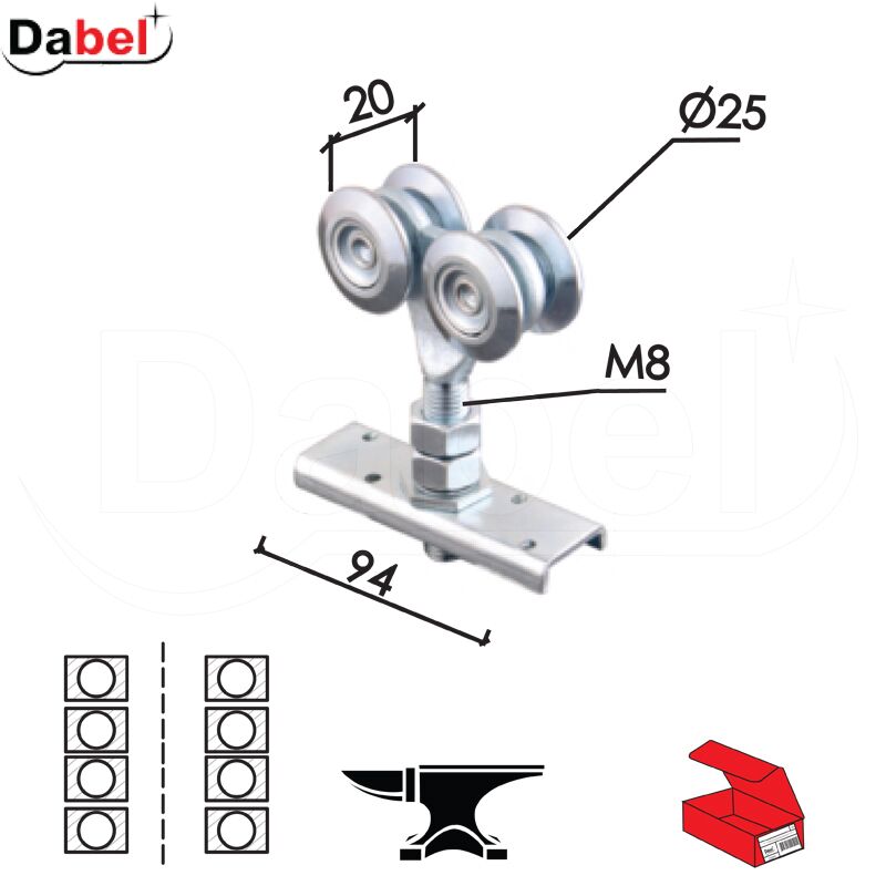 DABEL- Točak viseći za kliznu kapiju TKS- Materijal: Čelik- Boja: Cinkovano bela.Upotreba: metal.