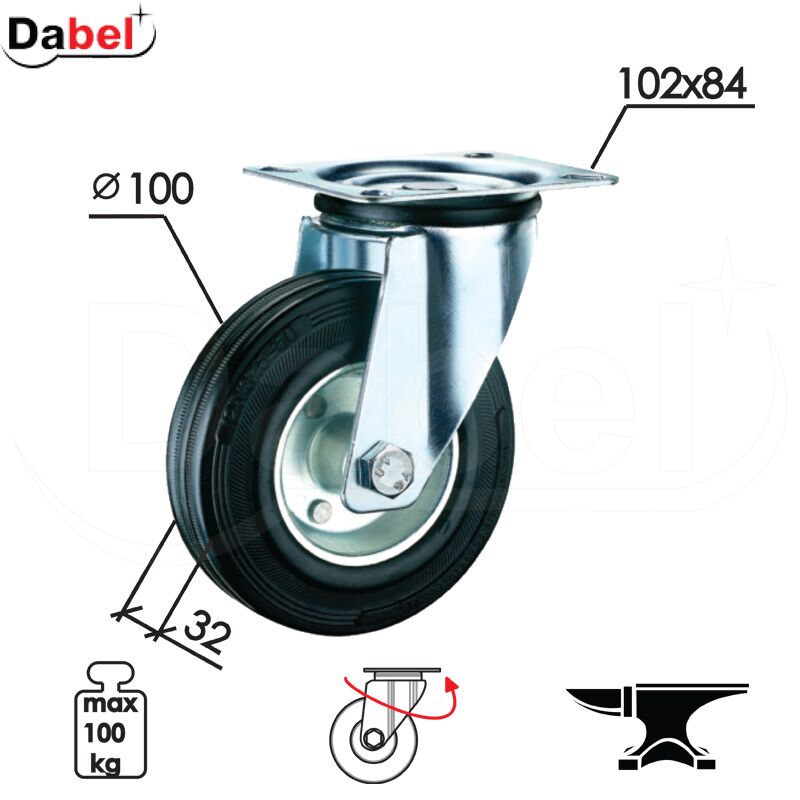 DABEL- Točak za kontejner rotirajuci T11- Materijal: Čelik- Boja: Cinkovano bela.Upotreba: metal.