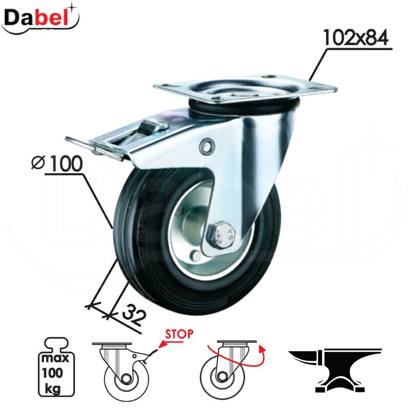 DABEL- Točak za kontejner sa kočnicom T12- Materijal: Čelik- Boja: Cinkovano bela.Upotreba: metal.