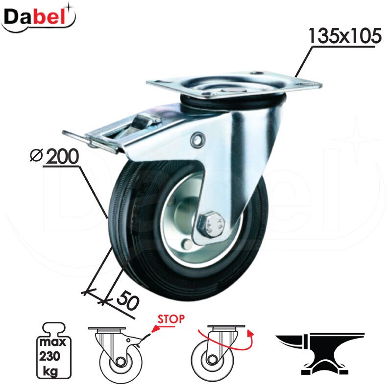 DABEL- Točak za kontejner sa kočnicom T12- Materijal: Čelik- Boja: Cinkovano bela.Upotreba: metal