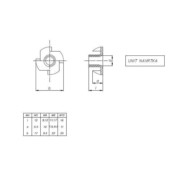 Dimenzije od M5 do M10.