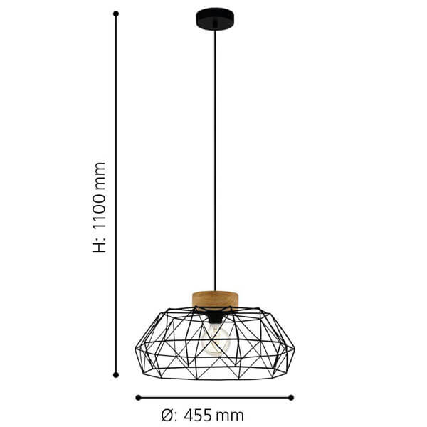 Materijal: čelik, drvo, crna, prirodna Visina artikla (u mm) 1100, Prečnik artikla (u mm) 455, Neto težina (u kg) 1,22, Visina nadstrešnice (u mm) 25, Prečnik nadstrešnice (u mm) 105 Tehnologija: Conventional-HV Maksimalna snaga: 1X60W Vrsta prekidača: bez prekidača