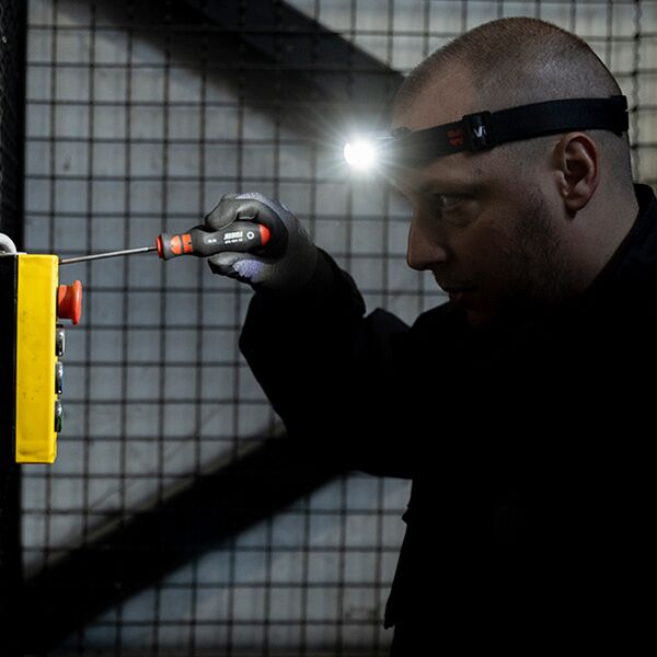Može se nositi na glavi, zaštitnom šlemu ili postaviti na metalnu podlogu pomoću magneta.