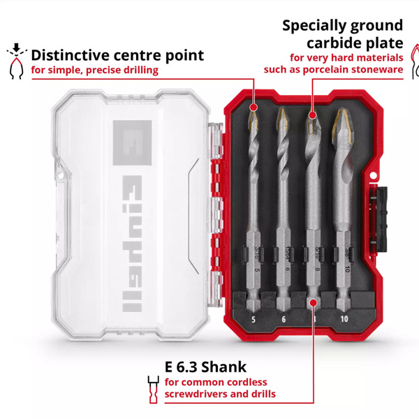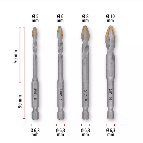 4 x burgije za keramiku (5 / 6 / 8 / 10 mm) sa karbidnom pločom