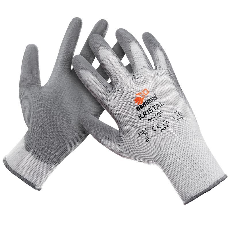 Pletene bešavne rukavice bele boje, od poliestera, sa tankim nanosom poliuretana sive boje na dlanu i prstima, i elastičnom manžetnom. Karakteriše ih fleksibilnost, komfor i paropropusnost, koja umanjuje znojenje. Primena – precizno rukovanje sitnim predmetima u suvim uslovima, elektro-industrija, mašinska i auto industrija, magacini, dvorišni radovi.