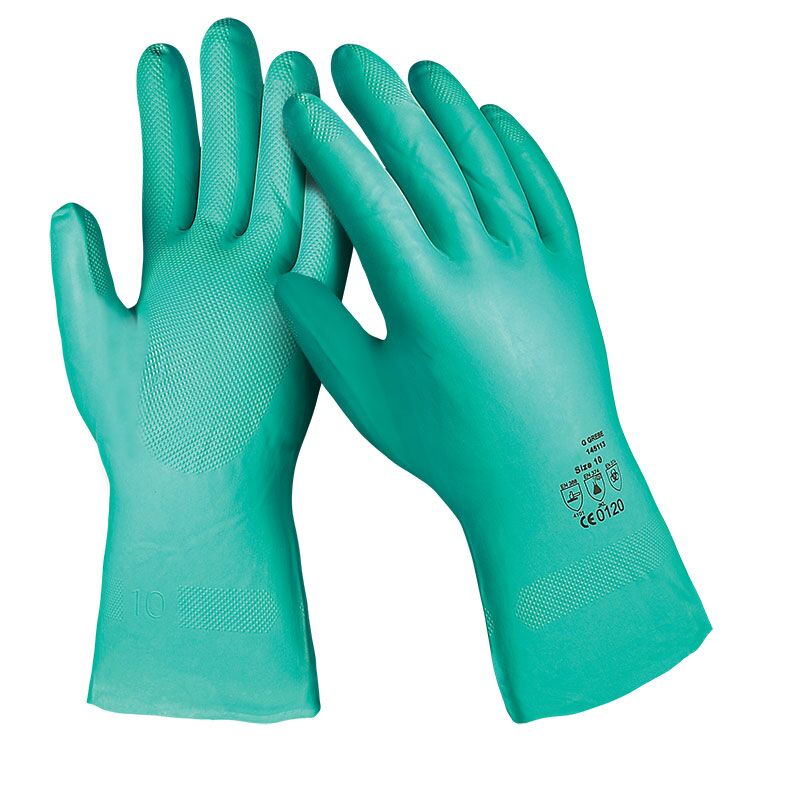 Nitrilne flokirane rukavice sa reljefnom površinom na dlanu i prstima. Debljina 0.38 mm, dužina 33 cm. Pogodne za upotrebu u industriji i domaćinstvu. EN 388 4101 EN 374 JK