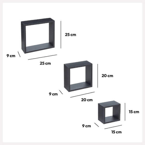Five Zidna Polica Kocka 15X9X15 20X9X20 25X9X25Cm Mdf Tamno Siva
