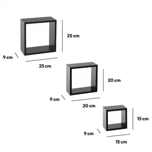 Zidna polica kocka 3kom 15/20/25cm mdf crna 138956A